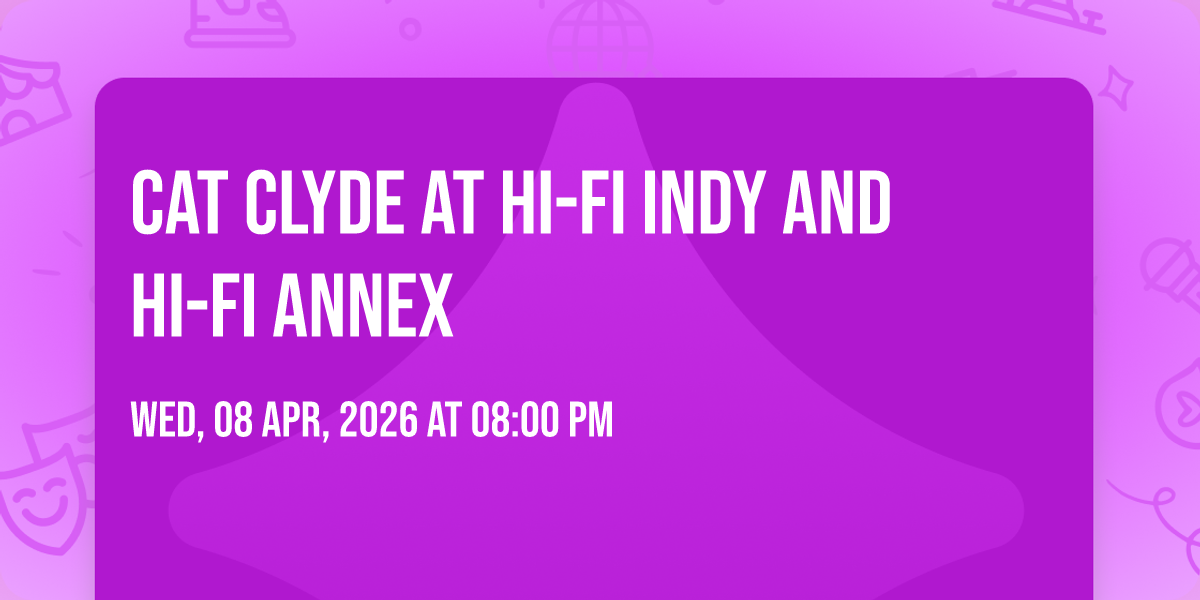 🎉 Welcome to Cat Clyde at HI-FI Indy and HI-FI Annex, where the impossible becomes possible and dreams take flight! 🏛️ Join us at HI-FI Indy and HI-FI Annex in the heart of Indianapolis, IN for an event that will redefine your expectations. 📅 On April 8th, 2026 at 08:00 PM, witness the transformation of space and time into something truly magical. ✨ It's a curated experience combining the best of innovation, entertainment, and community spirit, creating moments that will be remembered for years to come. Whether you're a first-time visitor or a seasoned enthusiast, prepare to be amazed. 🎊 Book now to ensure your place in this unforgettable experience!