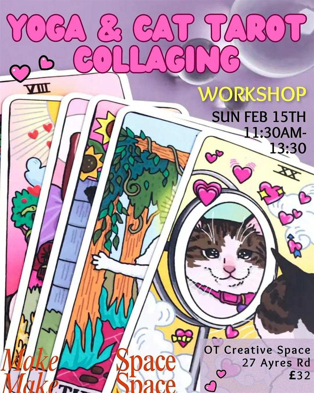 Yoga, cats, snacks & collaging. Pull cards and make something cute you’ll frame + take home 🐈✂️