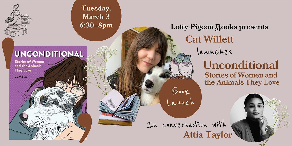 Join us for the launch of Cat Willett's Unconditional, an intimate and moving collection of stories about women and their life-changing relationships with animals.