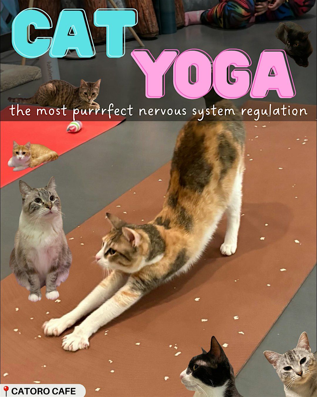 After the class, you’ll have about 15 minutes to hang out with the cats.