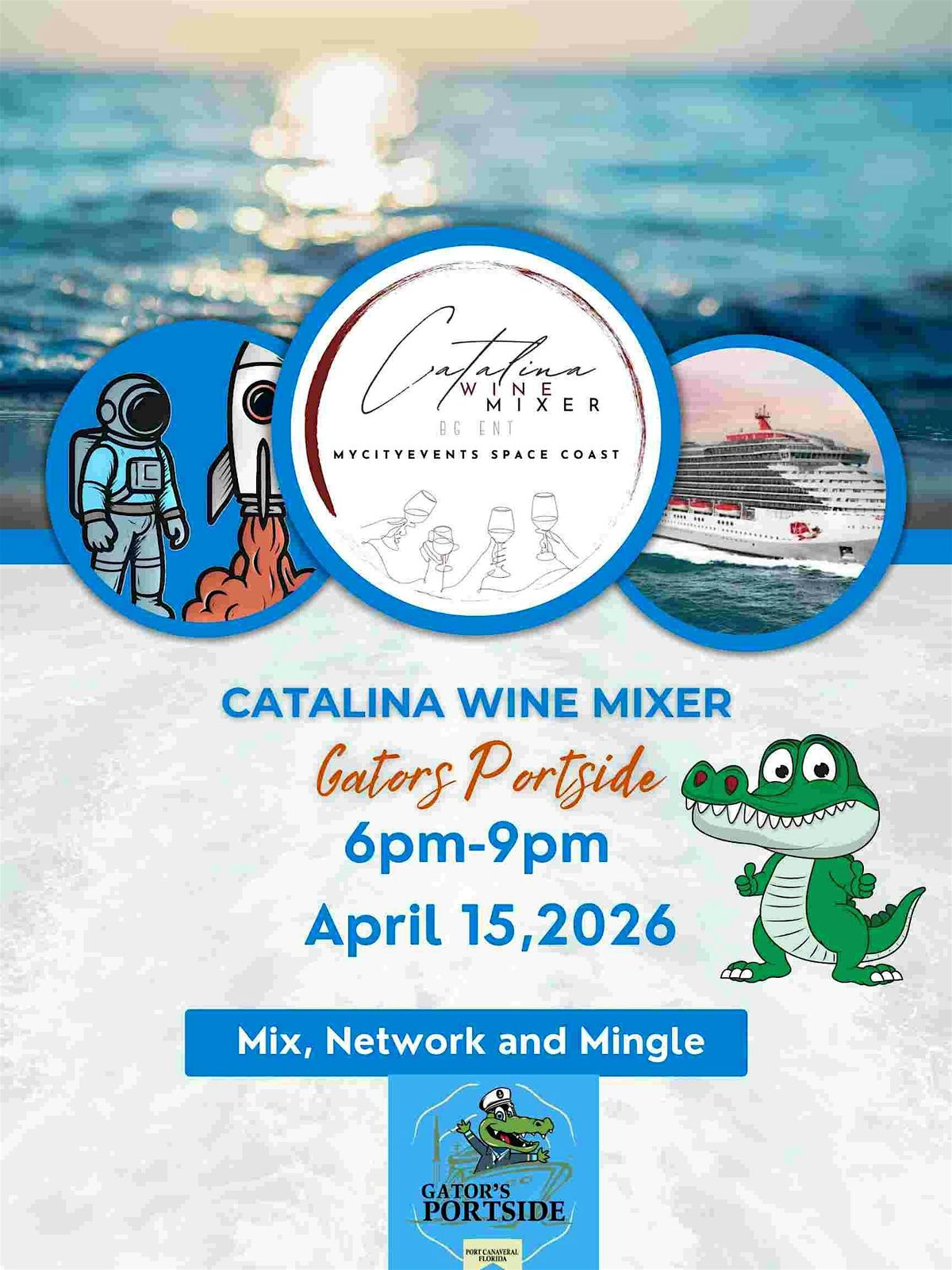 We're excited to announce that we are headed to the port for an evening of networking and fun! Mark your calendars for the Catalina Wine Mixer happening at Gators Portside on April 15th from 6 PM to 9 PM .