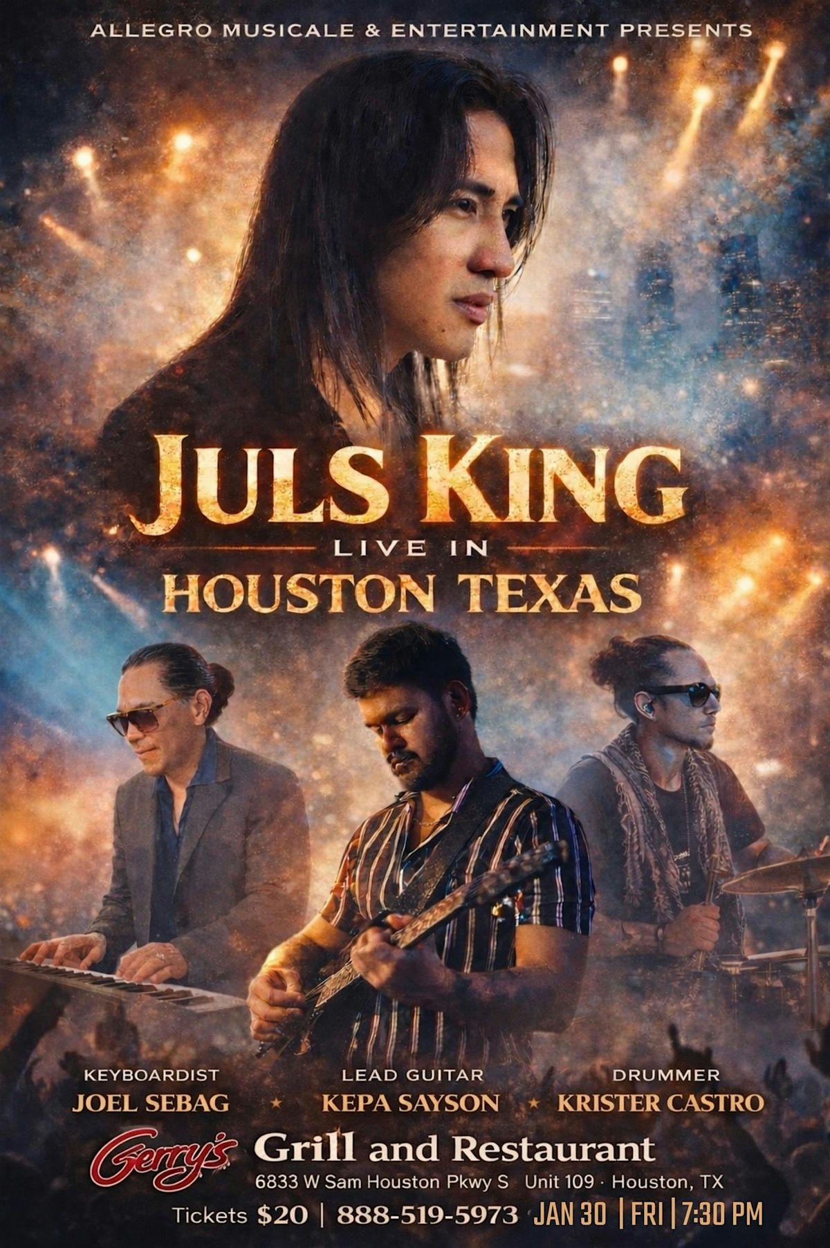 Catch Juls King live at Gerry’s Grill,6833 W Sam Houston Pkwy SUnit 109 Houston, TX