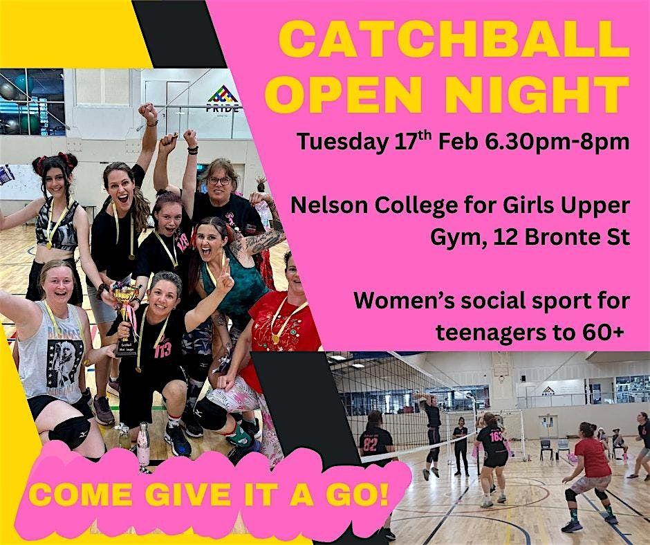 Come to our Nelson Bays Catchball FREE open night and learn an exciting new social sport! No experience needed. It's an easy sport to learn, suitable for all fitness levels. We are a friendly group of ladies and have club social events too so come join the fun!
