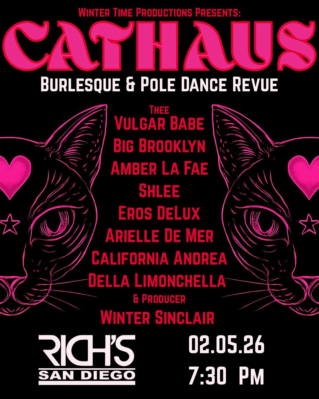 We are so excited to announce that our show will be moving on to bigger and better things over at @richssandiego! Please come celebrate this transition and experience queer joy in our new home venue! Follow us @cathausrevue