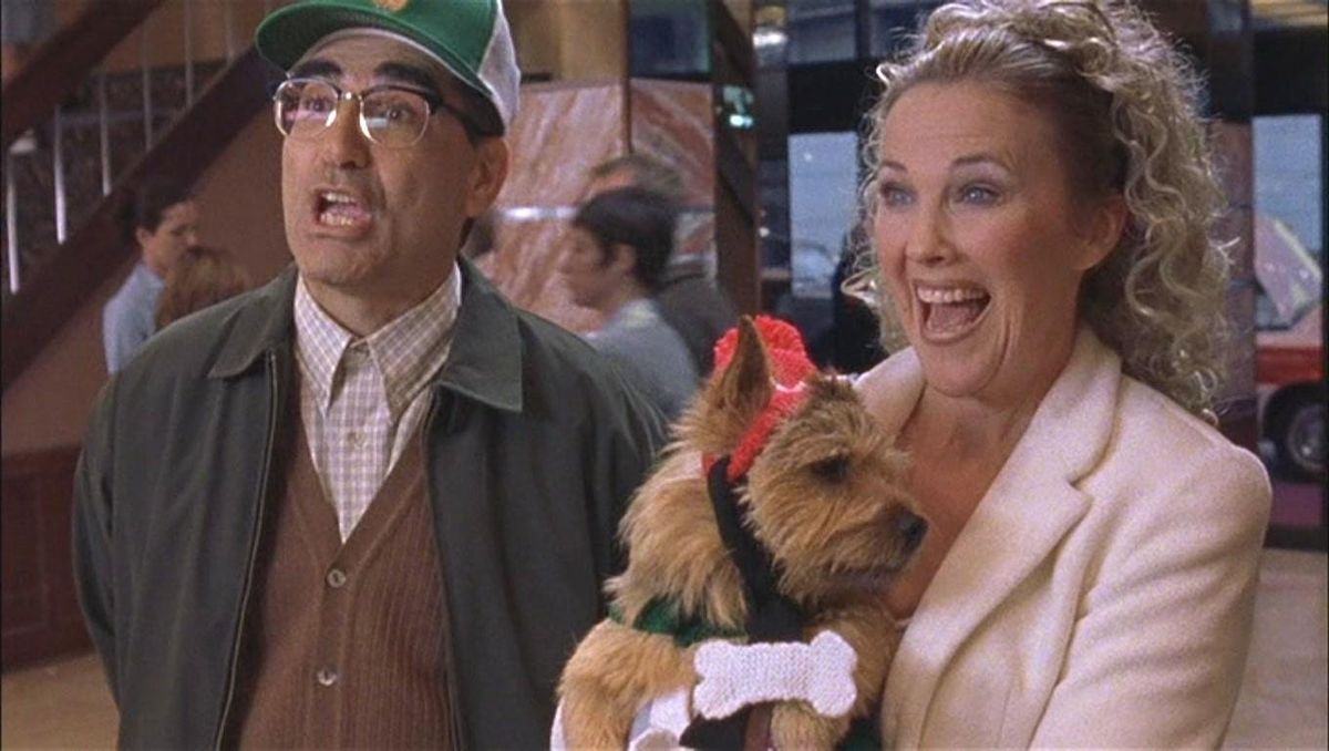 Catherine O’Hara shines as Cookie Fleck, a quirky and devoted dog owner with a colorful past, reuniting with longtime collaborator Eugene Levy as her husband Gerry. Working in Christopher Guest’s signature improvisational style, their decades-long comedy partnership makes them stand out even in the film’s hilarious ensemble cast.