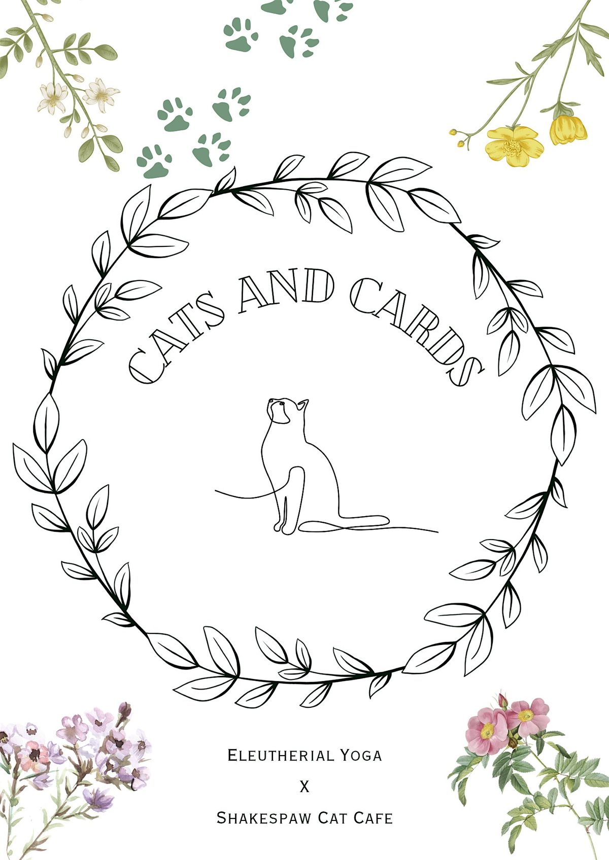 Join Claudi at Eleutherial Yoga for an evening of Cats and Cards at the Shakespaw Cat Cafe in Stratford-Upon-Avon, on Friday 17th April 2026 between 7-9pm!