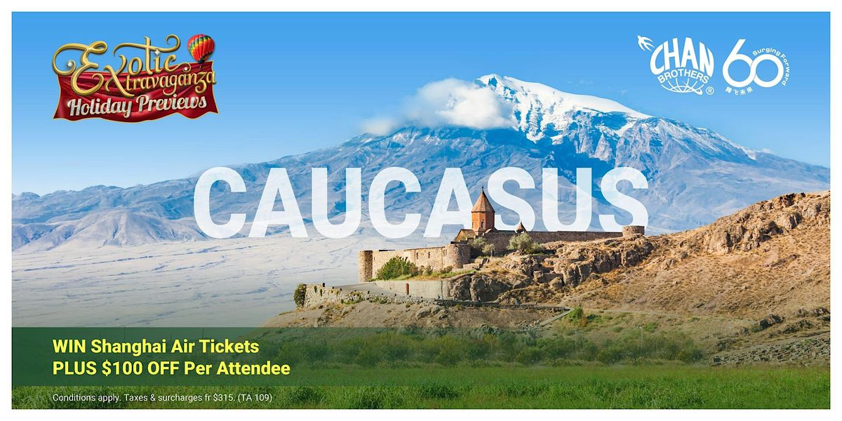You are invited to join our Exotic Extravaganza Caucasus Holiday Preview on 18 Apr (Sat) from 1.30pm to 2.15pm.