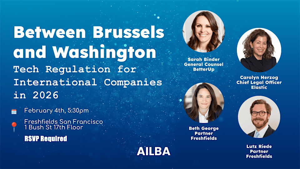 AILBA is hosting an engaging panel discussion on international regulatory compliance in the tech sector at Freshfields’ San Francisco office.