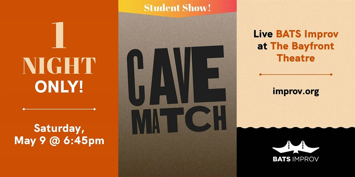Cave Matches are an opportunity for improvisers to create a team and perform their very own format at the BATS Bayfront Theatre. BATS has hosted Cave Matches for years to build and engage our community, give our past and present students a place to play and produce high-quality shows, and most of all, to have FUN doing it!
