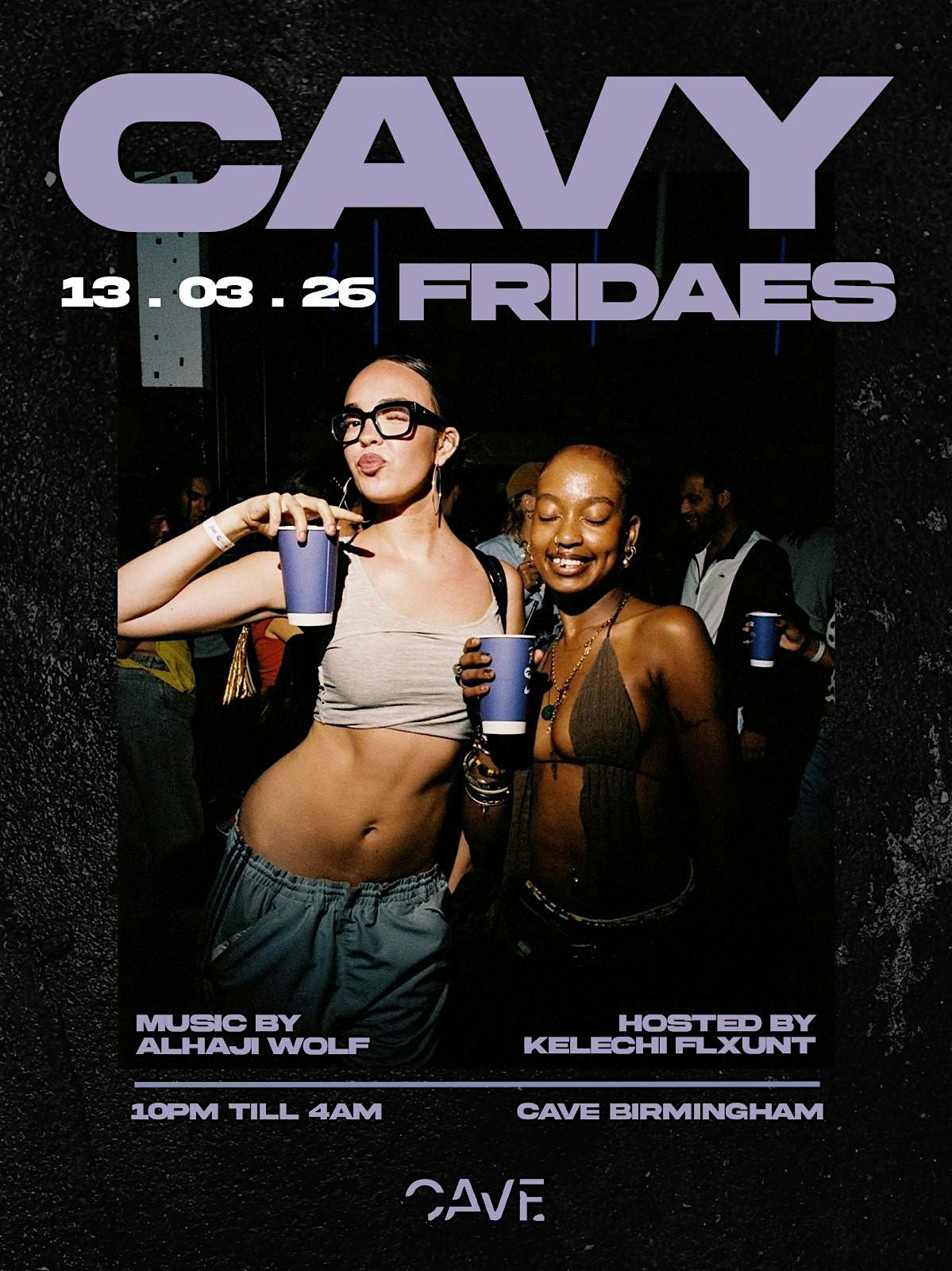Welcome to CAVY FRIDAES happening at Cave on February 27, 2026 at 11:55 PM (Europe/London time)! ? Get ready for a night filled with fun, music, and great vibes. Don't miss out on this epic event where you can dance the night away with friends and enjoy awesome beats. Mark your calendars and join us for a memorable night! See you there! ??