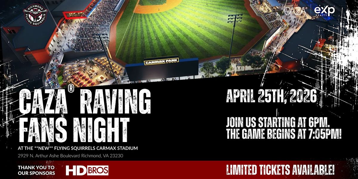 CAZA RAVING FANS NIGHT at the NEW Flying Squirrels CarMax Stadium is happening on April 25, 2026 | 6:00 PM – 10:00 PM at CarMax Park — and you’re invited!