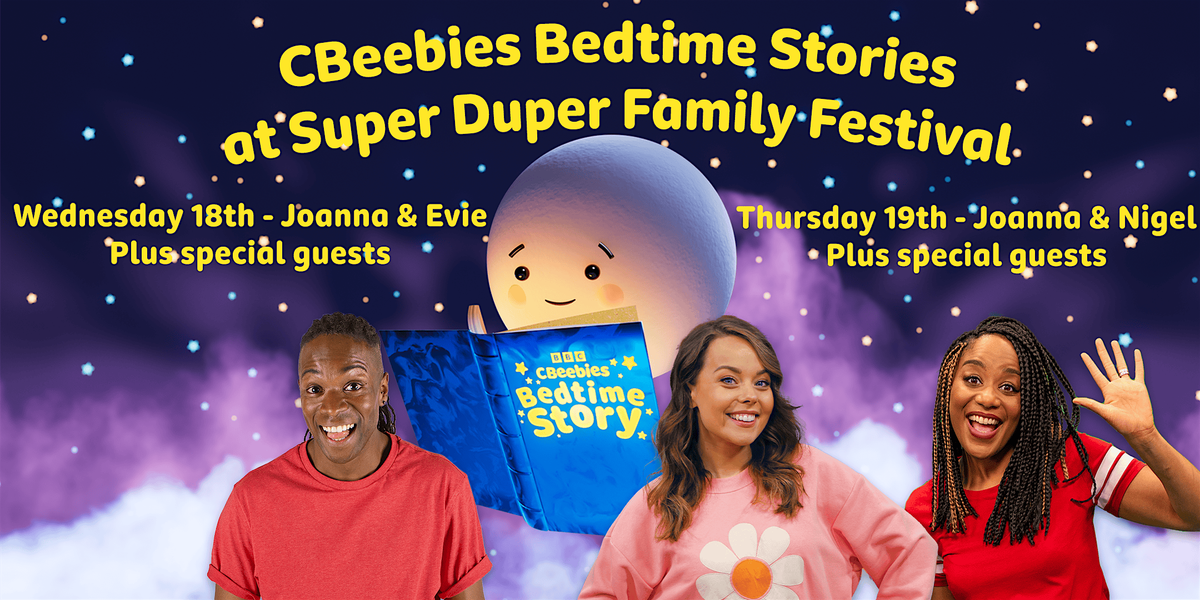 Join the stars of CBeebies for live CBeebies Bedtime Stories, as part of the Super Duper Family Festival. Celebrate the power of storytelling with your family as you snuggle down to enjoy stories and songs with CBeebies friends and surprise guests.