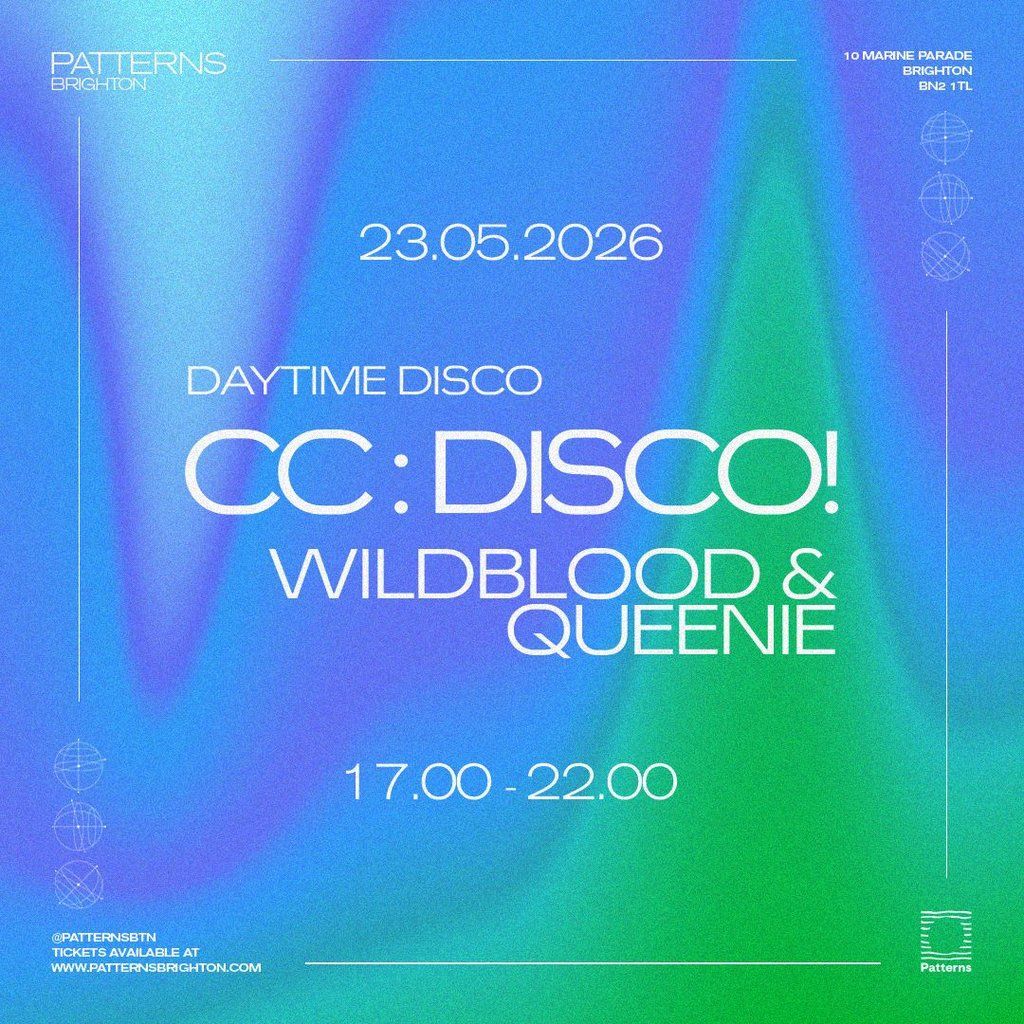 CC:DISCO! comes to Patterns for some day time frolicks in everyone's favourite sea-side basement, joined by local legends, Wildblood & Queenie.Artists