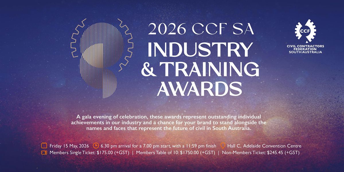 Join us for an incredible night of celebration at the CCF SA Industry & Training Awards ! This in-person event will be held in the prestigous Adelaide Convention Centre. Get ready to mingle with industry leaders, network with fellow professionals, and honor the best in the business in an elevated surroundings. This event promises to be an unforgettable experience. Don't miss out on this opportunity to be part of an event that recognises excellence and achievements in the industry. Mark your calendar and prepare for a night of surprises, fun and recognition!