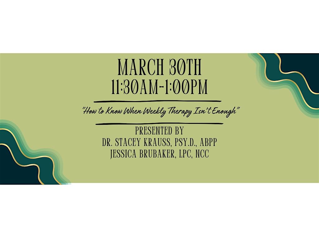 "How to Know When Weekly Therapy Isn’t Enough", Presented by Transitions Counseling and Consulting, CEO, Dr. Stacey Krauss, Psy.D., ABPP and Director of Training, Jessica Brubaker, LPC, NCC.