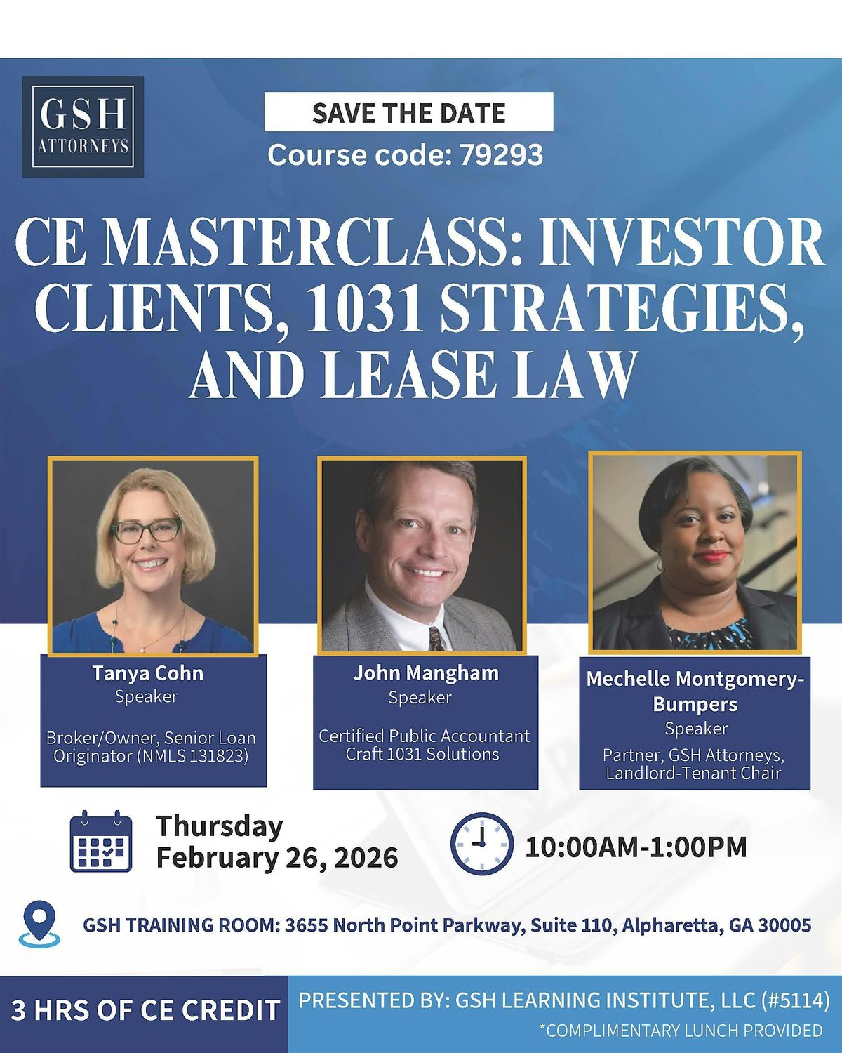 CE MASTERCLASS: INVESTOR CLIENTS, 1031 STRATEGIES, AND LEASE LAW