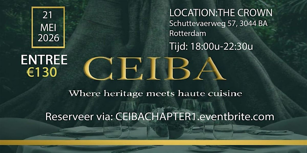 Stap binnen in The Crown, Rotterdam, voor de allereerste editie van CEIBA. Een avond waar culturele tradities, verfijnde gastronomie en live jazz vocalisten samenkomen in een spectaculair decor.