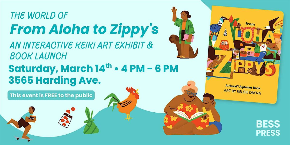 Join local publishers Bess Press for the launch of From Aloha to Zippy's , the newest keiki book, with artist & illustrator, Kelsie Dayna! This event is free to the public.
