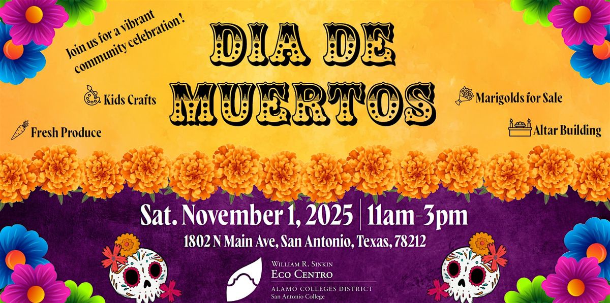 Face painting, children's arts and crafts, a photo booth, music and food will be available. Hourly demonstrations include sugar skull making, a food demo and altar making. Eco Centro will have marigolds and fresh vegetables for sale and share ideas and resources for sustainable living, including sustainable urban agriculture/gardening and water conservation using SAWS water saver programs.
