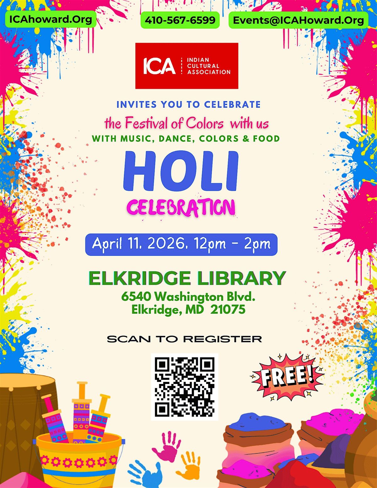 We will play with colors in the library parking lot. Caution - your clothes might get stained so dress accordingly. Feel free to bring your own organic colors.