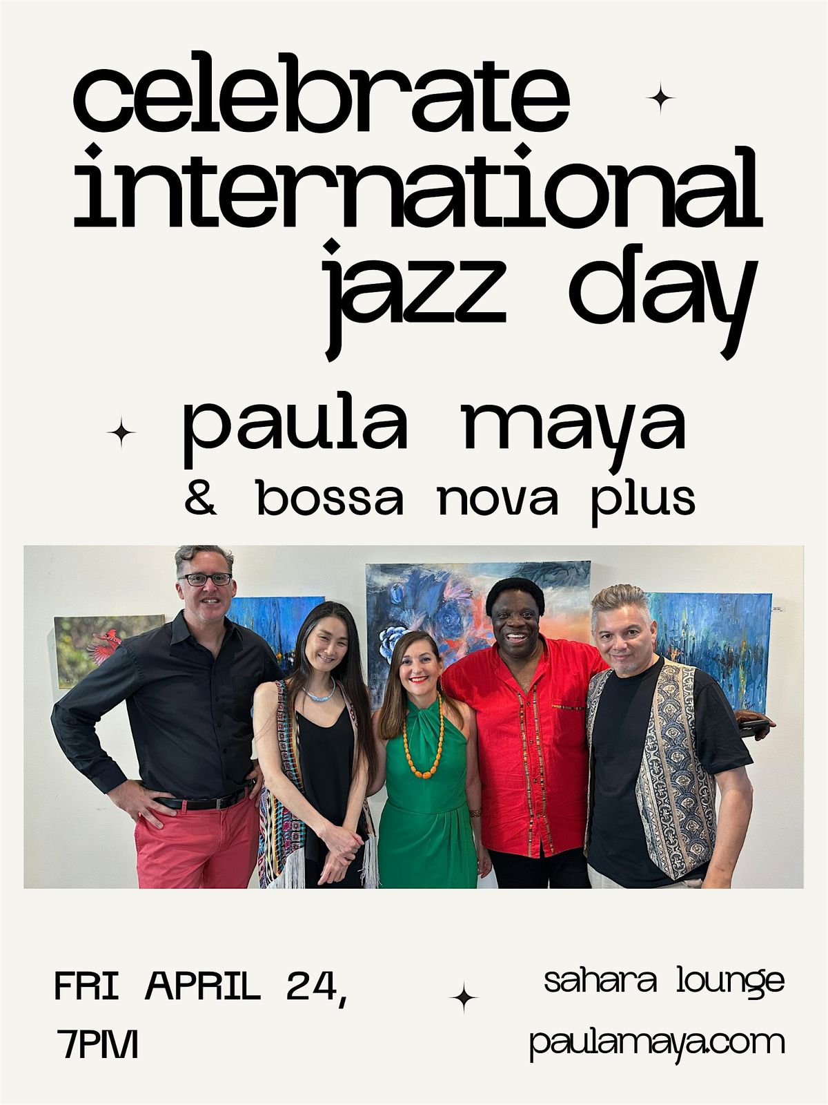 Welcome to 4th Fridays Bossa Nova with Paula Maya, celebrating International Jazz Day! Featuring the award winning Brazilian keyboardist, singer, songwriter Paula Maya and her world class band Bossa Nova Plus performing the classics of bossa nova, MPB and originals, making this night a must! Immerse yourself in the vibrant atmosphere of Sahara Lounge as you enjoy the best of Brazilian jazz. Early show, 7-8pm
