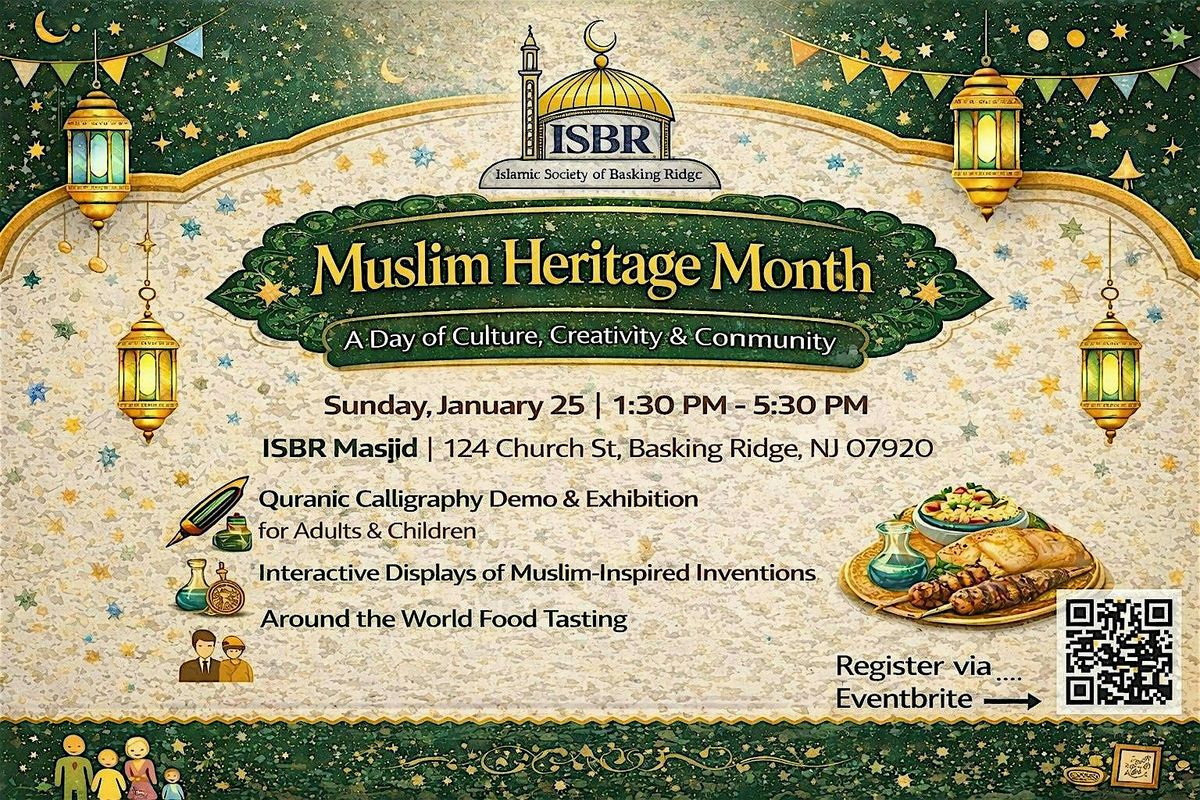 In honor of Muslim Heritage Month, the Islamic Society of Basking Ridge (ISBR) invites the community to our mosque to celebrate the rich cultural heritage of the Muslim community.