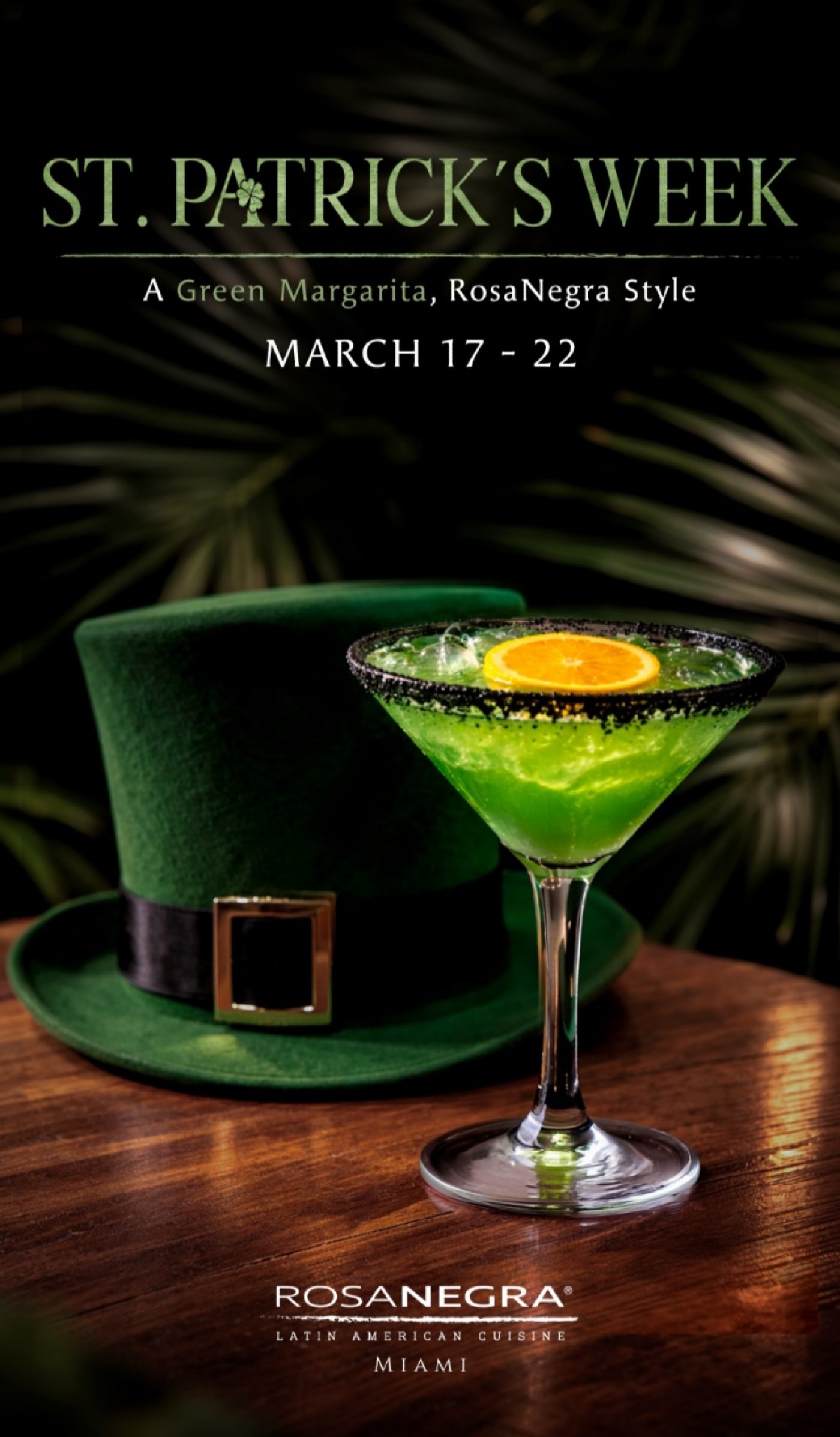 RosaNegra Miami invites guests to celebrate St. Patrick’s Week with a festive twist on its signature cocktail program. Known for its vibrant energy and elevated Latin American cuisine, the Brickell hotspot will feature a specialty green margarita, blending premium tequila with fresh ingredients and a bold presentation. The cocktail will be available from Tuesday, March 17 through Sunday, March 22. This limited-time celebration brings together RosaNegra’s high-energy atmosphere, lively entertainment, and festive cocktails, offering guests a spirited way to toast St. Patrick’s Week in the heart of Miami. Please let me know if you're interested in covering and I’m happy to share any additional assets you may need.