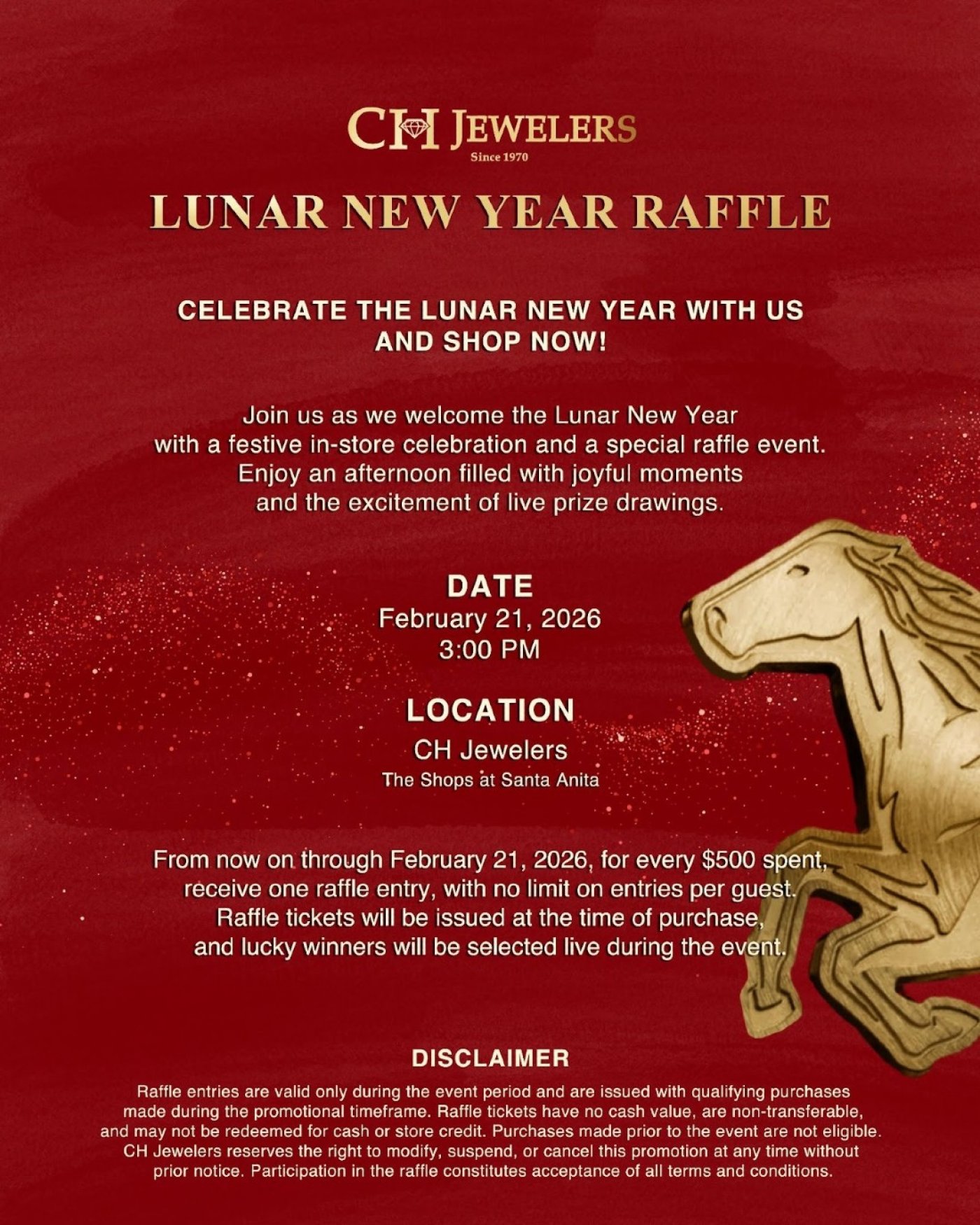 Join CH Jewelers as they welcome the Lunar New Year with a festive in-store celebration and a special raffle event.