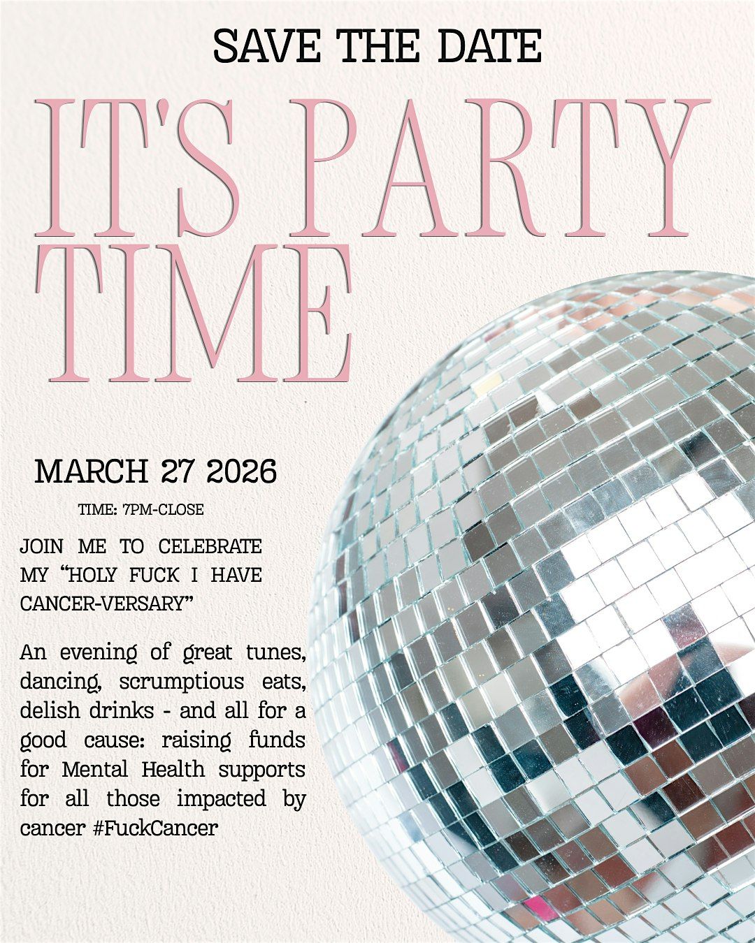 Come join me to Celebrate the one year anniversary of finding out about my Cancer. I cannot wait to see you all and give you big hugs and thank you for supporting me over this past year of surrealness.