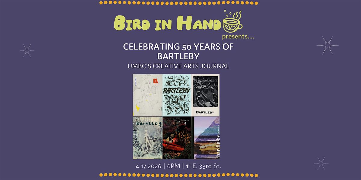 Explore and celebrate 50 years of UMBC's creative arts journal, Bartleby, and its legacy of non-conformity on April 17 at Bird in Hand! We'll hear from current and former contributors, have a reflective conversation, and enjoy refreshments from the bar.