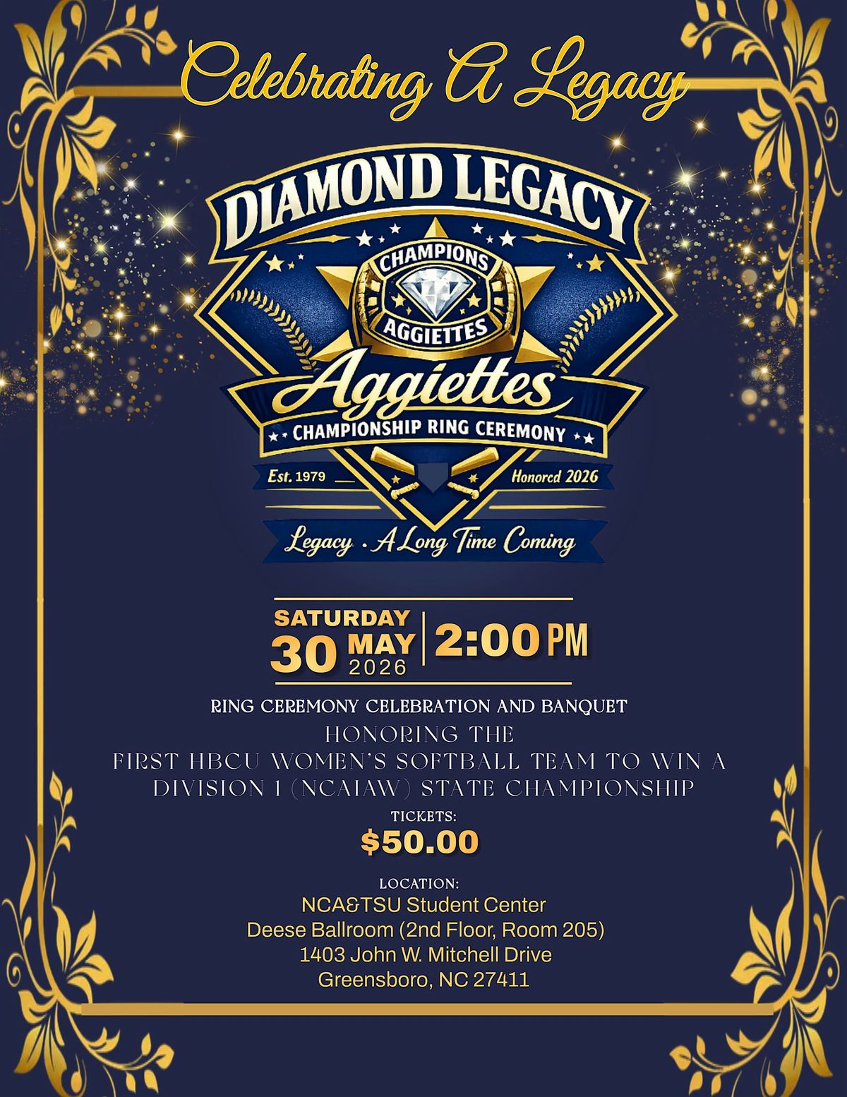 Join us for a powerful and historic celebration honoring the North Carolina A&T Aggiettes 1979 Softball Team, the first HBCU women’s softball team to win a Division 1 State Championship.