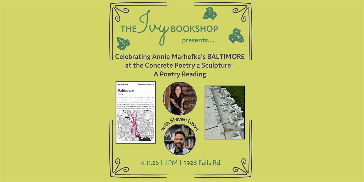 This very special, very Baltimore reading will feature Annie Marhefka and her new chapbook, which highlights beloved Baltimore places of all kinds through a poetic lens. Beloved poet Steven Leyva will join Annie Marhefka for this reading.