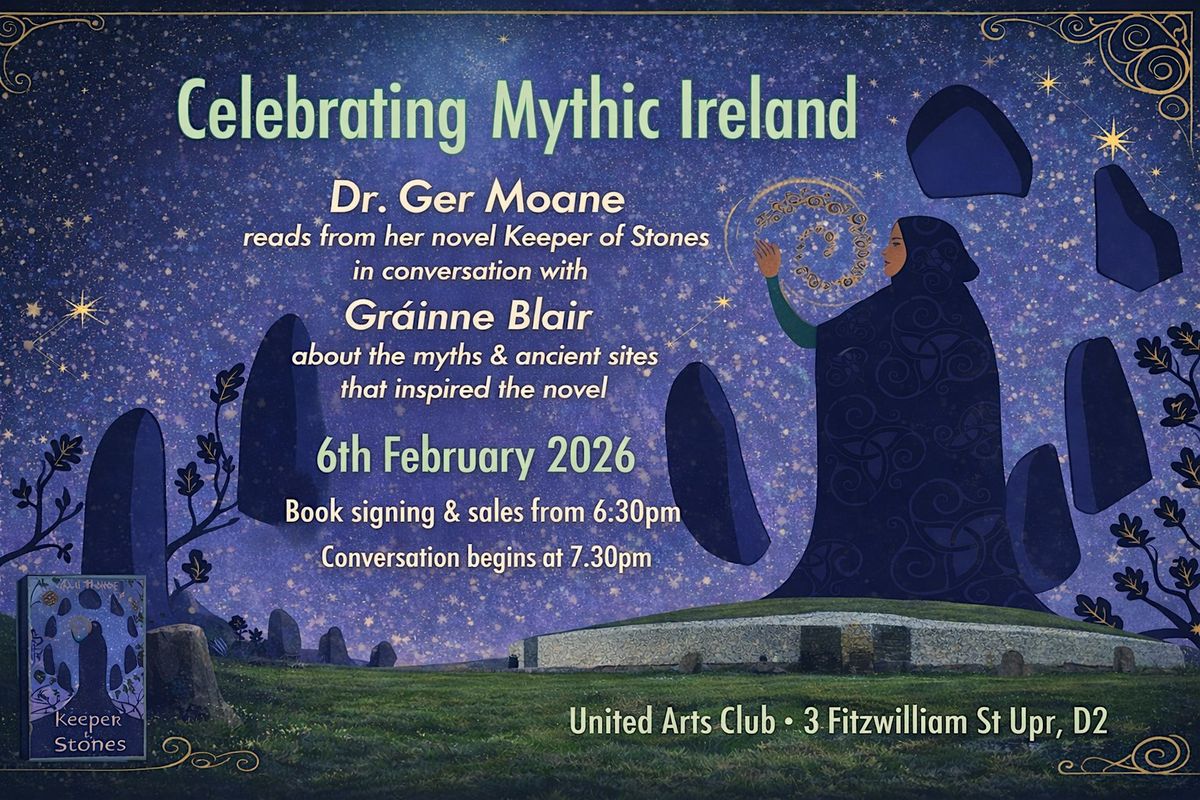 Ger Moane’s novel Keeper of Stones is inspired by the myths of the Tuatha de Danaan and by the mystical monuments of Newgrange. The novel begins at Imbolc, when, a young woman sets out on a journey to carry her birthstone to the great mound of Newgrange, and brings us on a journey across the sacred sites and important festivals of ancient Ireland. Ger will read from her novel and be in conversation with Gráinne Blair about the myths and ancient sites that inspired the novel.