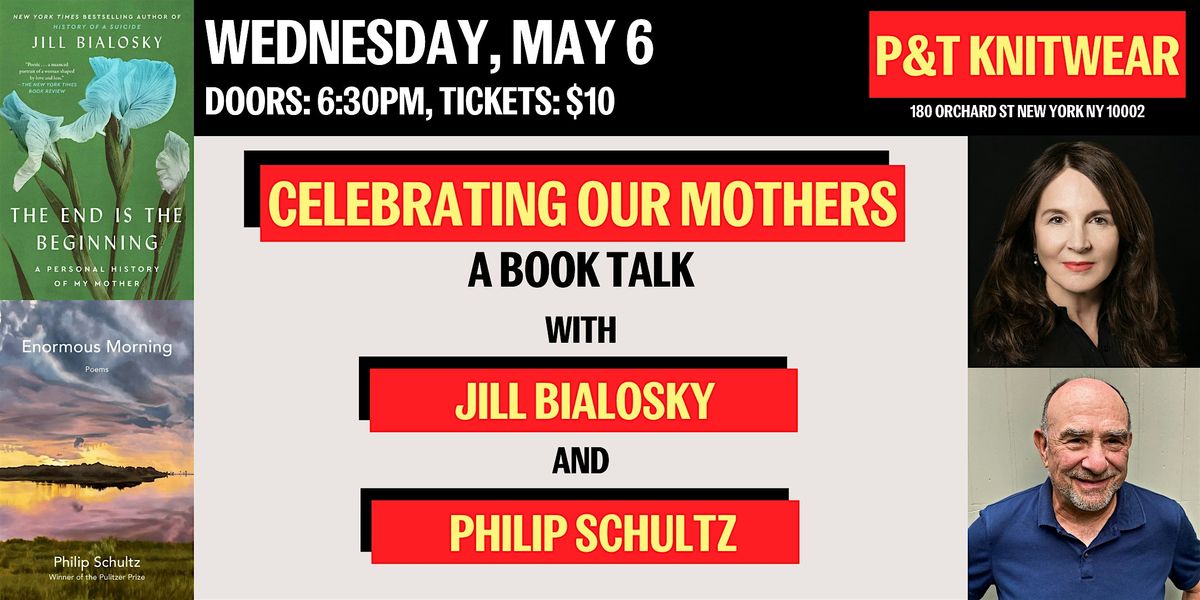 P&T Knitwear is pleased to welcome Jill Bialosky and Philip Schultz to discuss the stories and poems that we create when inspired by our mothers. We're also celebrating the paperback release Bialosky's book, ; a lyrical portrait of her mother’s life told in reverse order from burial to birth, and the release of Schultz's poetry collection, , which examines the lives and sacrifices of his foremothers.