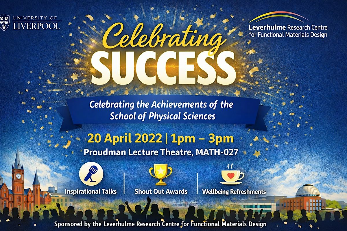 Join us on 20 April, 1–3pm in the Proudman Lecture Theatre (MATH-027), as we celebrate the achievements of staff and students from the School of Physical Sciences. Enjoy inspiring talks from across our community, the announcement of the Shout Out Awards winner, and time to connect over refreshments designed to support your wellbeing.
