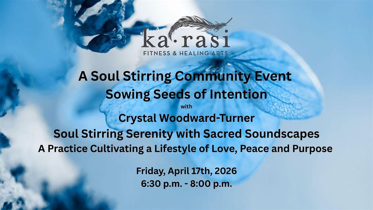 You're invited to a tranquil evening at the beautiful Botanic Garden Historic Barns Park. We will celebrate the emergence of spring through gratitude as we gather as a community moving with gentility and mindfulness while cultivating a sense of Soul Stirring Serenity enhanced by Sacred Soundscapes guided by Crystal Woodward-Turner.