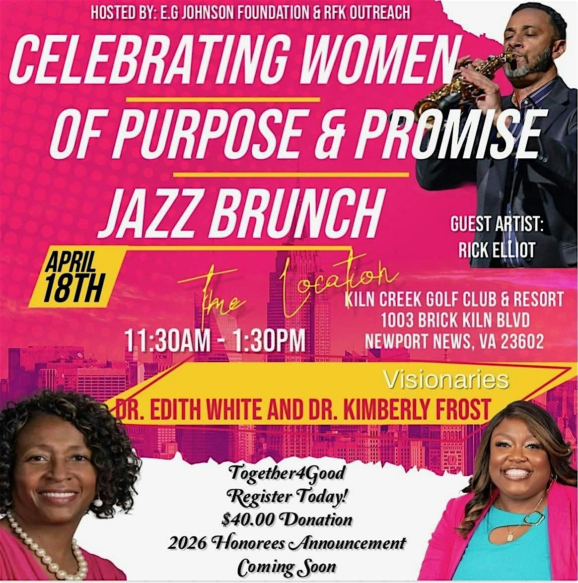 The E.G. Johnson Foundation and RFK Outreach warmly invite you to a power-packed Jazz Brunch dedicated to honoring extraordinary women of purpose.