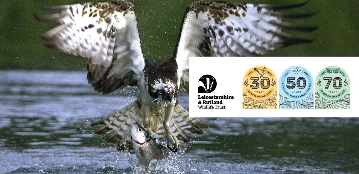 We are delighted to invite you to a special evening at The Barnsdale in Rutland on the 17th of July to mark our triple anniversary. Join us to celebrate 30 years of the Rutland Ospreys, 50 years of Rutland Water Nature Reserve and 70 years of Leicestershire and Rutland Wildlife Trust.