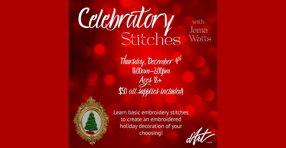 Students will be introduced to the basics of embroidery with d'Art Associate Artist Jama Watts! Learn basic embroidery stitches to create an embroidered Christmas tree (or other holiday decoration of your choice). All supplies are included* (floss, felt, hoop, needles & instructional handout)!