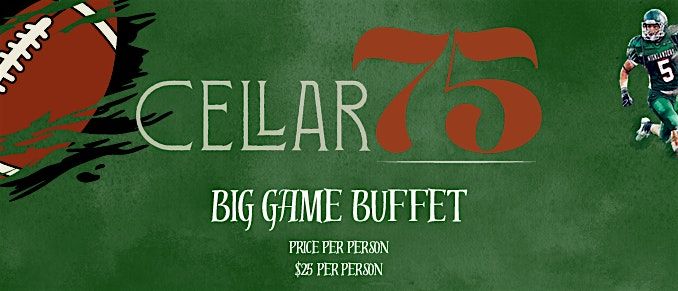 Get ready for the Big Game with Cellar75βs Big Game Buffet! Join us for the ultimate game-day spread, big screens, cold beer, and unbeatable atmosphere as we kick things off at 6:30 PM.