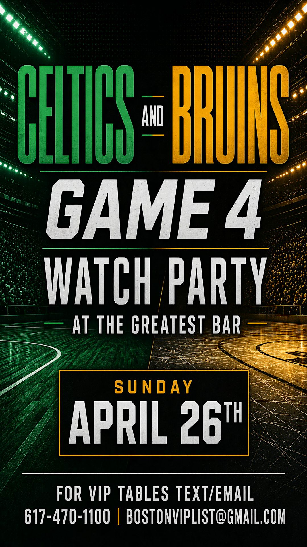 Catch both games LIVE at Bostonβs biggest game-day destination just steps from TD Garden β The Greatest Bar!