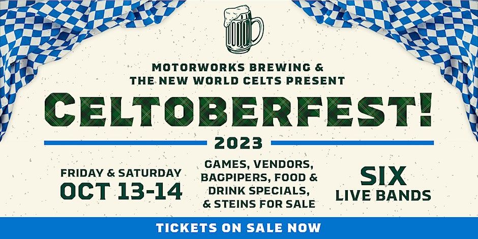 It’s almost time for CELTOBERFEST!? This year The New World Celts and Motorworks are back at it again with our annual fantastic fusion of beer-swilling, kilt-sporting, lederhosen-loving merriment and live music throughout the weekend. Join us in the beautiful Biergarten from October 14th -15th for the unique spectacle created when Celtic and Bavarian culture clash! We’ll have SIX live bands, special vendors, bagpipers, food specials, steins for sale and lots and lots of men & women wearing kilts! This event is family (and dog!) friendly, so don your finest lederhosen, dirndl or most festive tartan and join us for a weekend chock-full of Oktoberfest celebrations with a Celtic twist! The band line up is listed in the ticket link. See you all soon! Early Bird tickets are on sale now! Grab yours at the ticket link today!