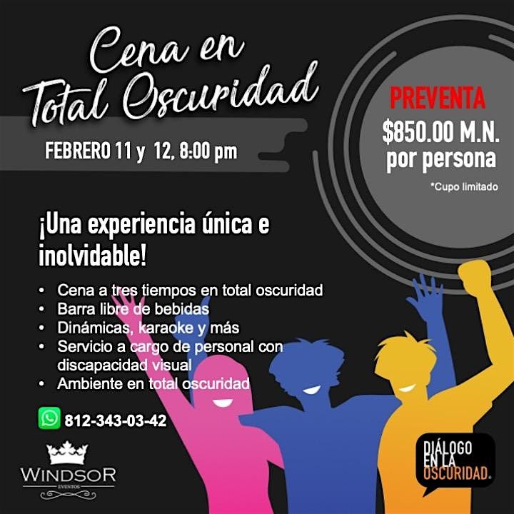 Thu, 12 Feb at 08:00 pm CENA EN TOTAL OSCURIDAD JUEVES 12 DE FEBRERO DEL 2026