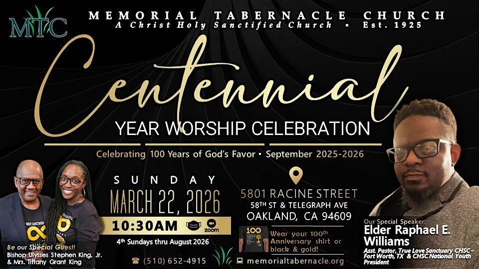 The Centennial Year Worship Celebrations take place on 4th Sundays to allow MTC to share our gratitude for how the Lord has kept us for 100 years.