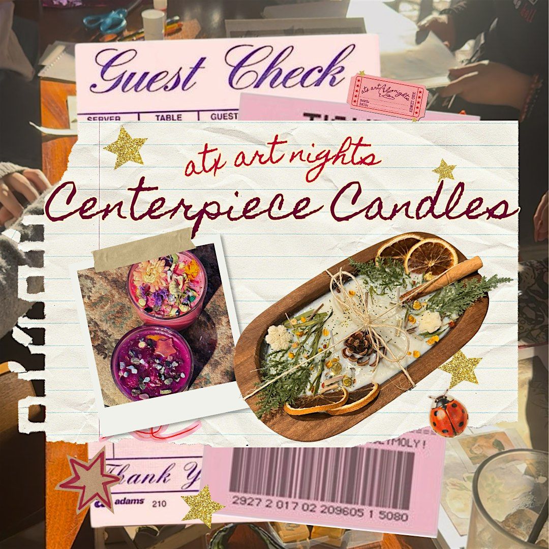 Get ready to create the most beautiful centerpiece candles with pine cones, dried oranges, cinammon sticks, crystals, flowers, words, charms, and more! The candles will be in wooden boat shaped holders, and we'll have plenty of scents and decorations to choose from!