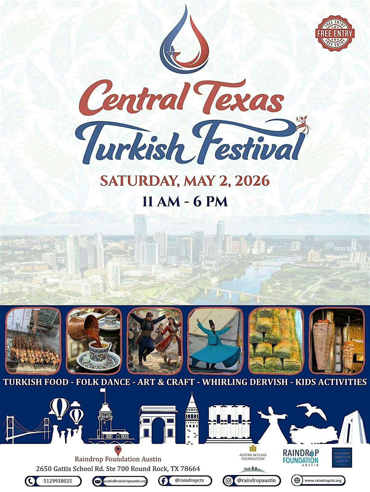 CENTRAL TEXAS TURKISH FESTIVAL will feature exquisite samples of Turkish- Mediterranean Cuisine (Doner Gyro Kebab, Baklava, Turkish Coffee and more), cultural exhibits, whirling dervish, folk dances, children's area, arts & crafts and more!You do not want to miss this family event that everyone will find something to enjoy!!!