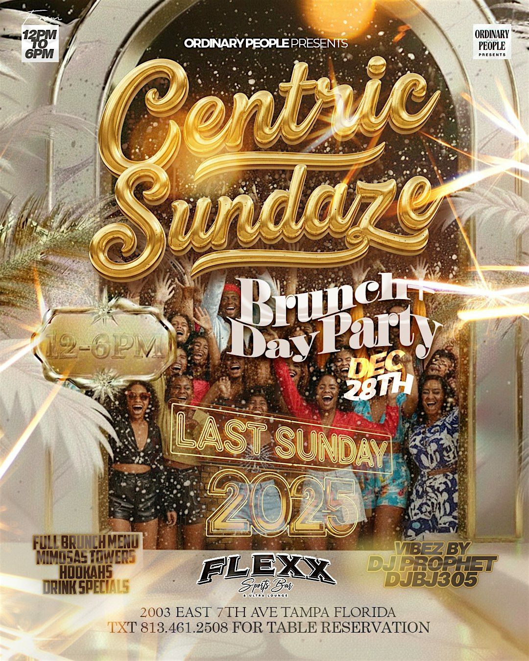 The ordinary people presents: The BIGGEST Brunch & Day Party in Tampa Bay- Centric Sundaze. Every Sunday at Flexx Sports Bar & Ultra Lounge