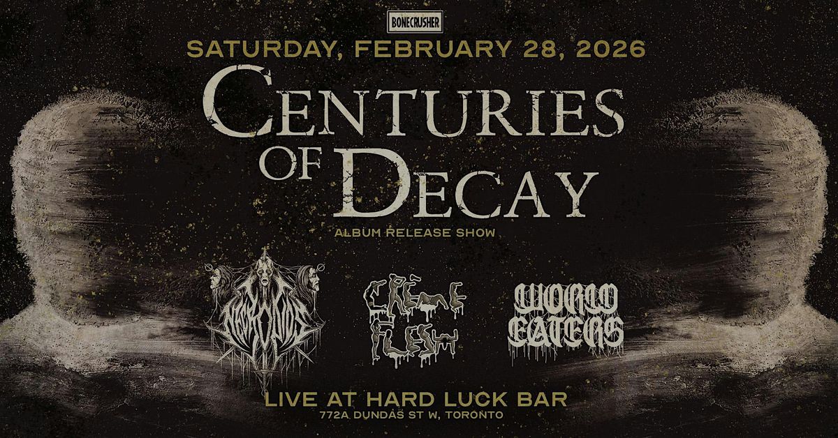 Saturday, February 28th, 2026 at the Hard Luck Bar in Toronto progressive death metal force Centuries of Decay celebrates the release of their crushing new record, 'A Monument to Oblivion'. An immersive night of atmosphere, heaviness, and relentless energy with mild pushing and shoving.