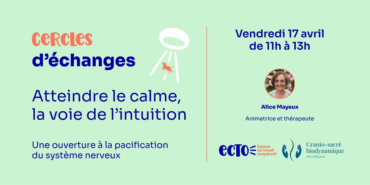 Alice vous invite pour une série de cercles d’échanges mensuels. L’état de calme et l’intuition sont-ils reliés? Peut-on se mettre en condition pour recevoir l’intuition? Quel est le lien entre intuition et système nerveux?