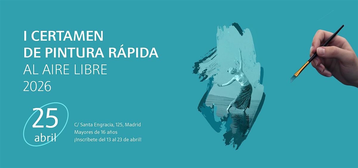 El sábado 25 de abril de 2026, de 09:30 a 14:00 h, se celebrará el I Certamen de pintura rápida al aire libre organizado por Canal de Isabel II, en el entorno del Segundo Depósito (Calle Santa Engracia, 125, Madrid).